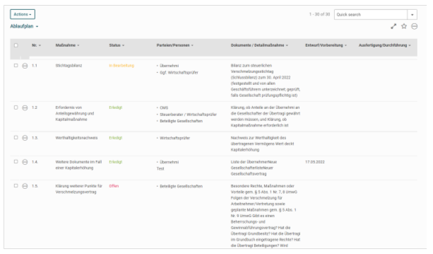 Unternehmensreorganisationen und Integrationsprozesse im Nachgang zu Übernahmen und Fusionen – der Erfolg von komplexen Strukturierungsprozessen hängt von einer Reihe von Faktoren ab. Der Einsatz von Legal-Tech-Lösungen, wie dem CMS Reorganisation & PMI Planner, kann helfen, Fallstricke bei solchen Projekten von Anfang an zu vermeiden. Unsere Anwälte arbeiten eng mit dem Legal-Tech-Team zusammen, um alle notwendigen rechtlichen Schritte der Strukturmaßnahmen vom ersten Tag an digital zu überwachen.