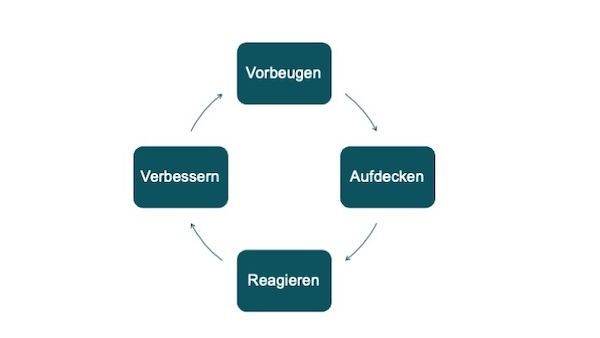 Um die Compliance des Unternehmens zu gewährleisten, müssen angemessene organisatorische Vorkehrungen zur systematischen Vermeidung von Fehlverhalten und Gesetzesverstößen durch Mitarbeiter* getroffen werden. Ein effektives Compliance Management System orientiert sich an der Größe, Struktur und Risikogeneigtheit des jeweiligen Unternehmens. Im Einzelnen haben sich Vorkehrungen bewährt – und bilden heute einen Marktstandard – die folgende Elemente enthalten: Vorbeugen (Prevent), Aufdecken (Detect), Reagieren (Respond) und Verbessern (Improve).