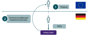 Oftmals sind von der Wegzugsteuer auch Holdinggesellschaften betroffen, in deren Vermögen sich weitere Beteiligungen und übriges Vermögen, wie bspw. Immobilien oder Wertpapiere, befinden. Zu beachten in diesen Konstellationen ist insbesondere, dass sich durch den Wegzug des Gesellschafters faktisch auch der Verwaltungssitz der Holdinggesellschaft verlegen kann, was zu erheblichen gesellschaftsrechtlichen und steuerlichen Auswirkungen führen kann.