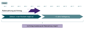 Ebenfalls kann auf Antrag auf die Erhebung in Jahresraten verzichtet werden. Für einen Zeitraum von maximal zwölf Jahren müssen die Jahresraten damit nicht entrichtet werden.