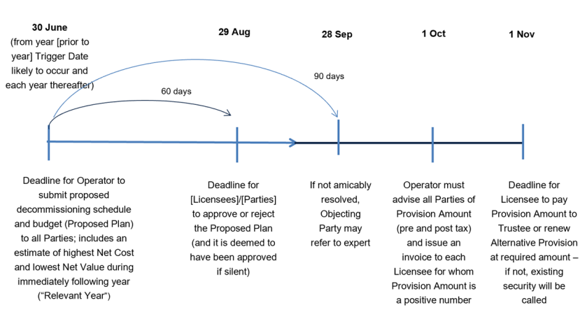 The purpose of reaching an agreed Decommissioning Plan is to enable the Operator to calculate each Licensee’s share of the cost of Decommissioning in accordance with the formulae included in Clause 6 of the OEUK DSA on a pre-tax and post-tax basis in order to determining the amount of security to be provided by each Licensee (the “Provision Amount”).