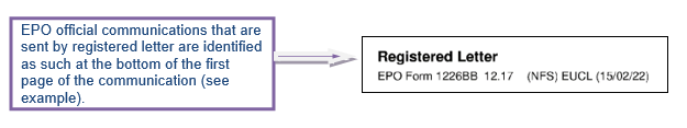 In accordance with the European Patent Convention, where notification of an official communication is sent by registered letter, currently, the letter is deemed to be delivered to the addressee on the tenth day following its posting (Rule 126(2) EPC).