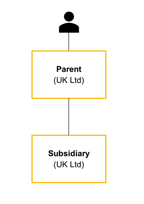• The individual is entered as a PSC on Parent’s PSC Register. Parent is entered as the PSC on Subsidiary’s PSC Register by virtue of being an RLE.
