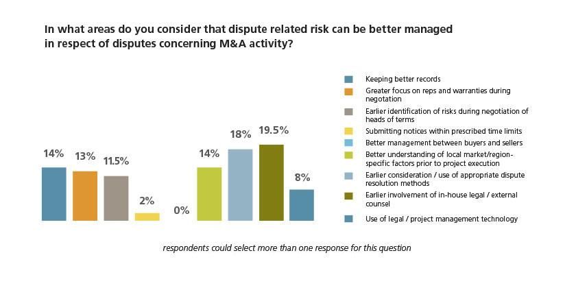Like in contentious situations with host states and regulators, when it comes to disputes relating to M&A activity, the early involvement of in-house legal and external counsel is also raised as the key priority, along with prompt consideration of dispute resolution methods. Keeping better records and an improved knowledge of the local market and region-specific factors are also considered to be prudent.