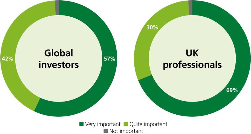 An overwhelming majority (98%) of global investors now view environmental performance as important, with 56% describing it as “very important”.