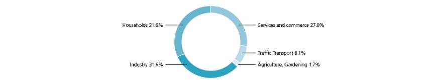 4.1.2 As of 2013, the largest consumers were industry and households (both 31.6%), services and commerce (27%), transport (8.1%) and agriculture (1.7%) (see Figure 3).