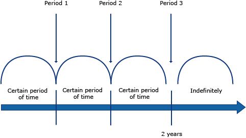 - Multiple (2, 3 or more) temporary employment contracts have been entered into exceeding a total term of 3 years; and