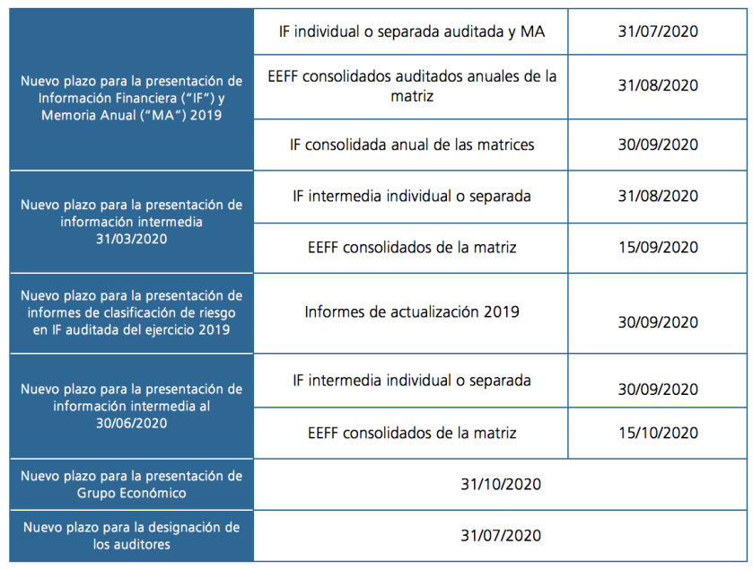 • Modificar los artículos 2, 3, 4 y 5 de la Resolución de Superintendente Nº 033-2020-SMV/02, estableciendo como nuevos plazos los siguientes:
