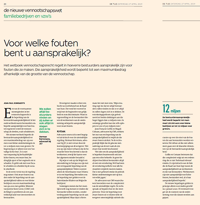 Het wetboek vennootschapsrecht regelt in hoeverre bestuurders aansprakelijk zijn voor fouten die ze maken. Die aansprakelijkheid wordt beperkt tot een maximumbedrag afhankelijk van de grootte van de vennootschap.