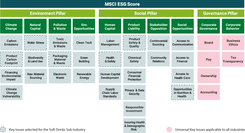 De juridische ontwikkelingen op het gebied van ESG in relatie tot supply chain zijn talrijk. Een goed overzicht van onderwerpen die in het kader van de driepoot Environment, Social en Governance, relevant zijn, volgt uit een overzicht opgesteld door MSCI.