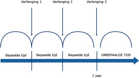 - Er meerdere (2 of 3 of meer) tijdelijke arbeidsovereenkomsten zijn overeengekomen waarbij in totaal een termijn van 2 jaar (voorheen drie jaar) is overschreden; en
